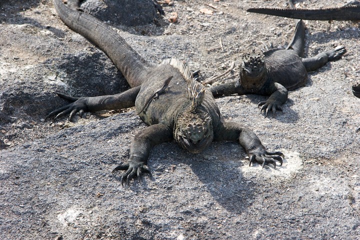 Marine Iguana with lava lizard
